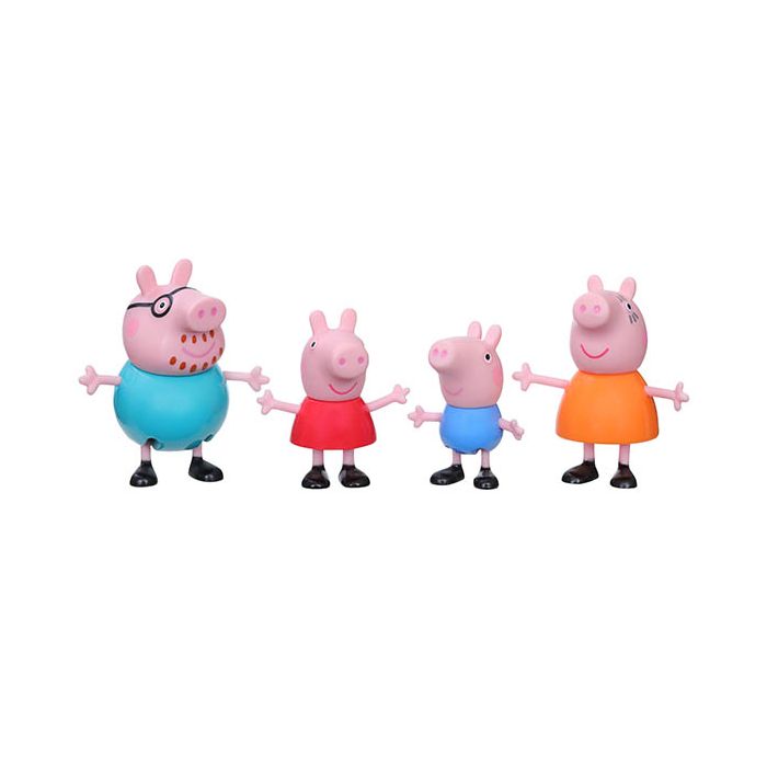 PARTY OF 4; PLEASE. THIS SET OF FIGURES INCLUDES ALL 4 FAMILY MEMBERS IN THEIR ICONIC OUTFITS; DRESSED AND READY FOR ADVENTURE. PEPPA PIG AS SEEN ON NICK JR WITH THIS 4-PACK FIGURE SET; KIDS CAN REENACT SCENES FROM THEIR FAVORITE TV EPISODES OR PLAY OUT IMAGINED STORIES FROM PEPPAS FAMILY LIFE. AN OINKTASTIC GIFT FOR PRESCHOOLERS KIDS AGES 3 AND UP AND FANS OF PEPPA PIG WILL LOVE TO RECEIVE THIS FIGURE PACK AS A HOLIDAY GIFT OR BIRTHDAY PRESENT.