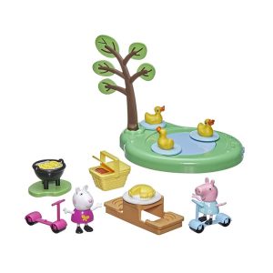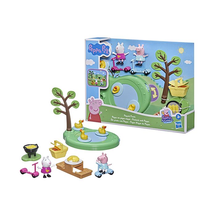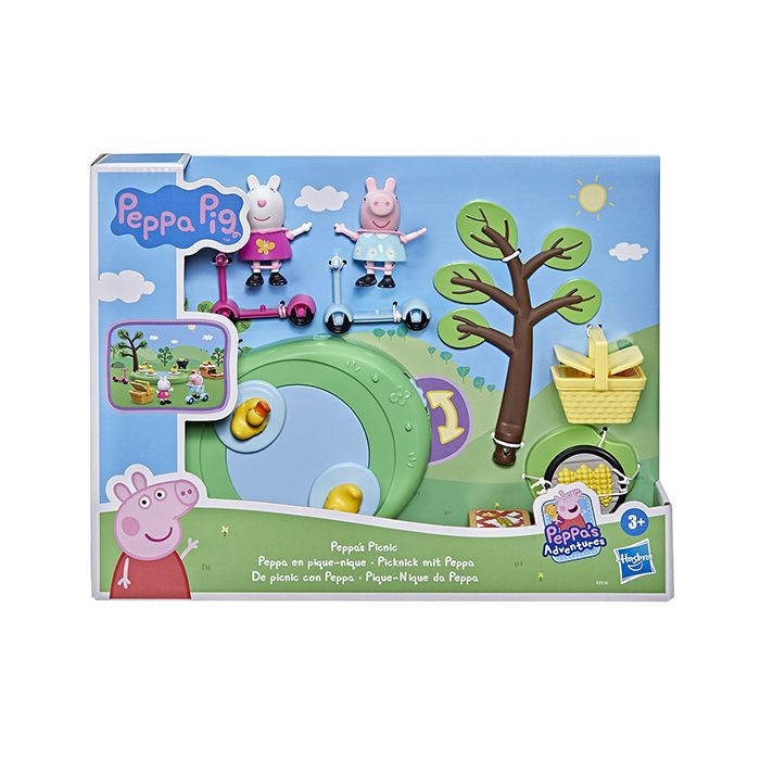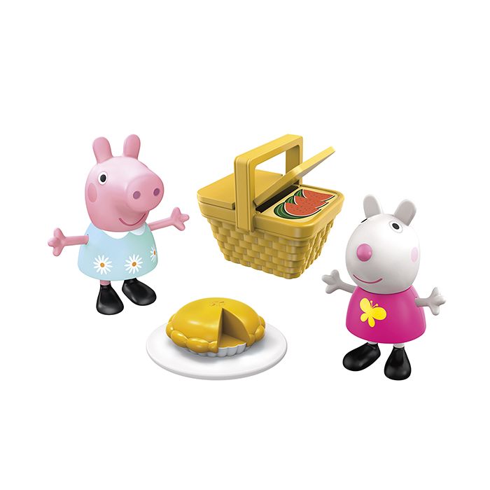 FUN WITH PEPPA PIG AND BEST FRIEND SUZY SHEEP. PEPPAS PICNIC SET TOY INCLUDES 3-INCH PEPPA PIG AND SUZY SHEEP FIGURES FOR IMAGINING A FESTIVE PICNIC OUTING.