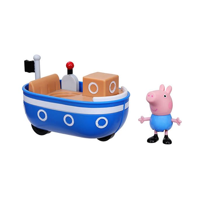 FUN BOAT RIDE. ACT OUT ON-THE-GO ADVENTURES. THE 8 CM GEORGE PIG FIGURE FITS DIRECTLY INTO THE BOAT TOY TO PRETEND HE’S A PASSENGER ON A FUN RIVER RIDE.